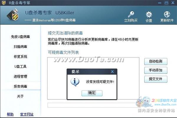U盘杀毒专家的功能已经为大家介绍完毕了,是不是很强大!它绝对是您工作、生活的好帮手,个人隐私的保护神!